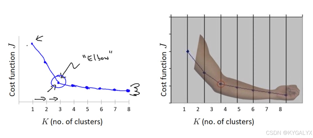 在决定什么时候停止训练时,肘形判据同样有效,数据通常有更多的噪音,在增加分类无法带来更多回报时,我们停止增加类别。