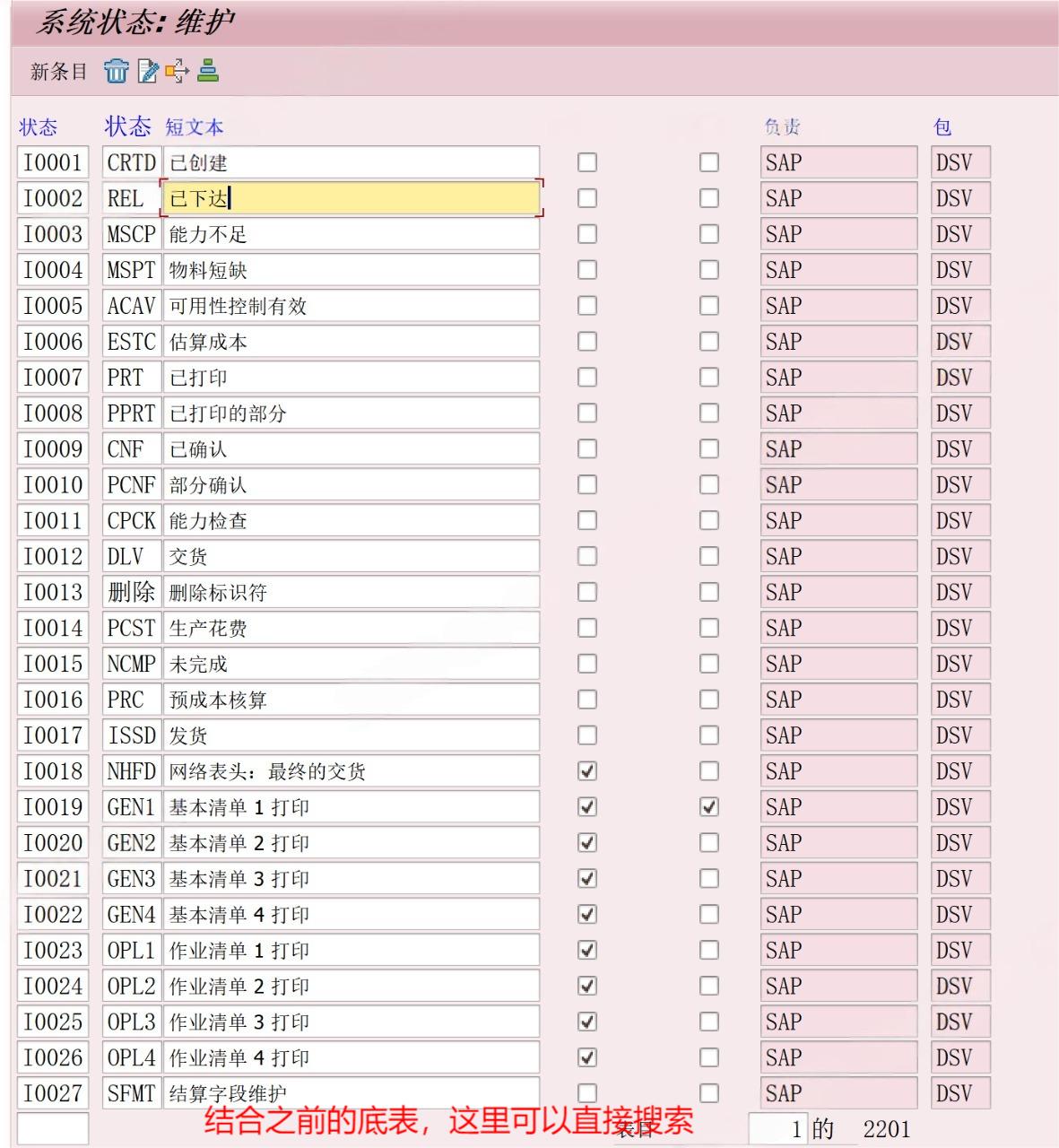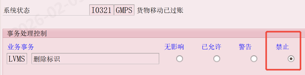通过对不同状态的设置达成对工单的管控,例如:要求工单有货物移动的情况下,就不允许删除,即BS22设置I0321,GMPS(货物移动)状态下,不允许LVMS(删除标识)