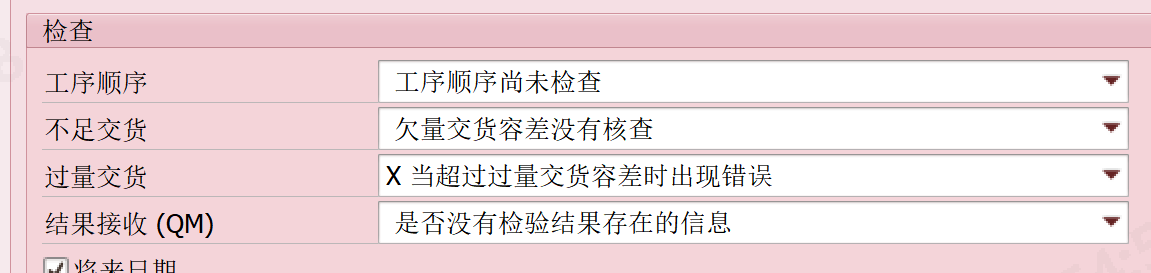 下拉菜单中的 "在订单生成期间检查有效性" 和 "在订单下达期间检查有效性",就是两种不同的检查时机。一个是在创建保存时检查物料可用性检查、组件可用性检查、日期有效性检查等;另外一个是在工单下达时检查。