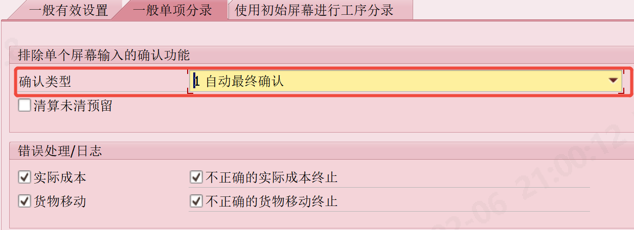 这个配置界面可以管控工序是否检查作业顺序;是否超量报工;是否检验等。并且在分录里面可以设置这部分控制报工后,系统自动处理"最终确认"(CNF)状态。