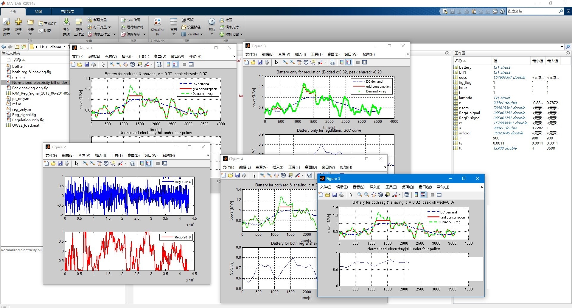 - 系统参数设置:定义了电池容量、充放电速率、退化成本等系统参数,以及调峰和调频任务的详细信息。