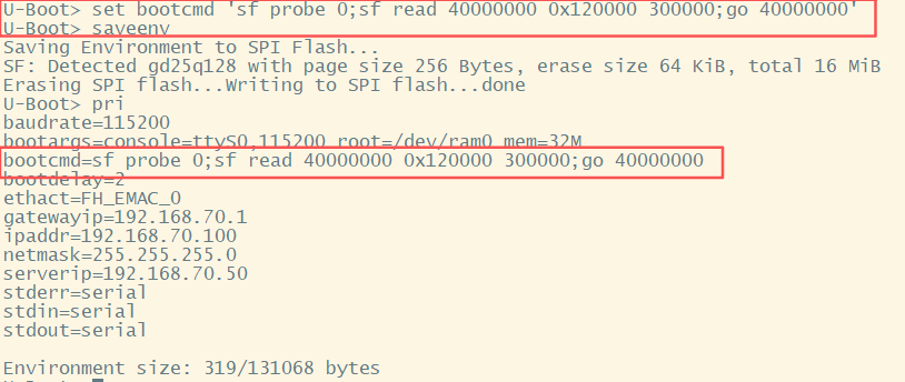 set bootcmd 'sf probe 0;sf read 40000000 0x120000 300000;go 40000000'