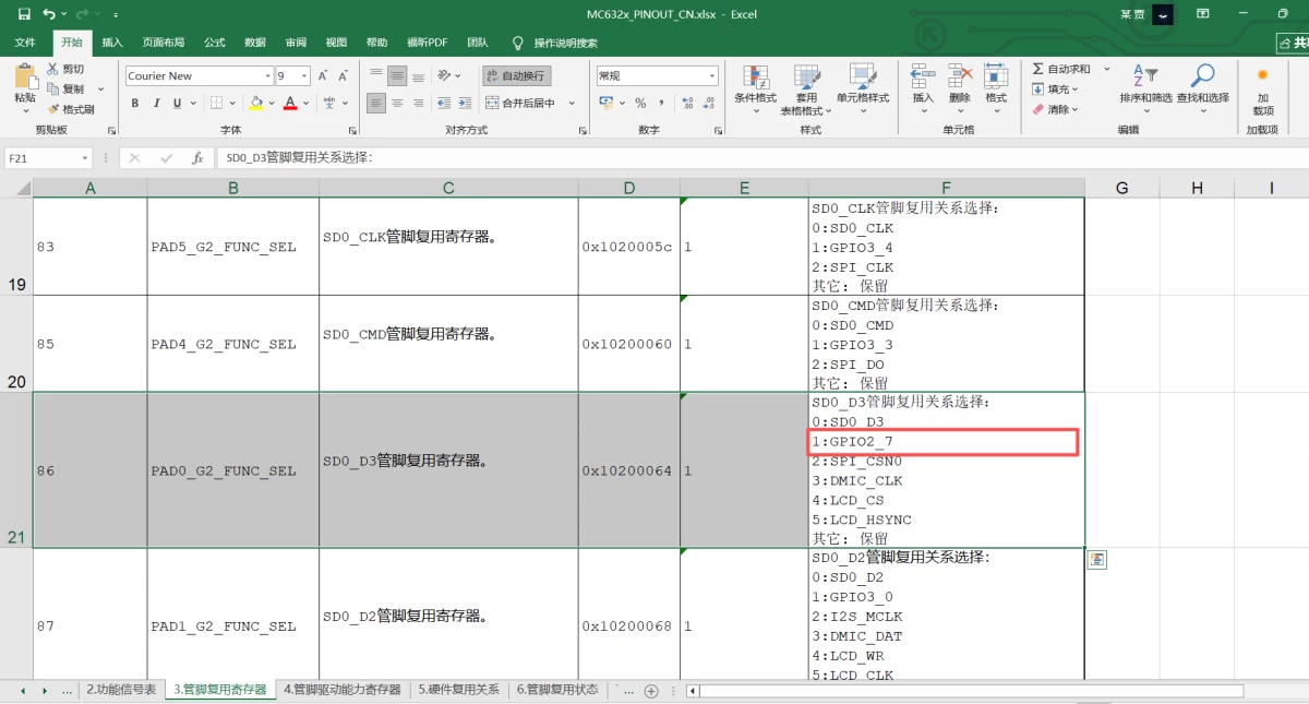 我们需要修改代码以适配开发板引脚,查看资料:.\FH_RT_V3.4.0_20250123\FH_RT_V3.4.0_20250123\docs_tools\hardware\board\MC632x_PINOUT_CN.xlsx