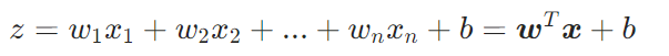 z = w1x1 + w2x2 + ... + wnxn + b - 激活判断得到预测值: