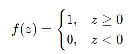 感知器的激活函数是符号函数 ,作用是将线性加权和z映射为0 或 1的二分类结果,公式为: