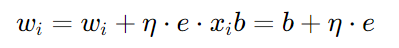 η:学习率(0<η≤1),控制参数更新的步长,和后续梯度下降的学习率作用一致;e:预测误差y - y_hat;x_i:第 i 个特征值。