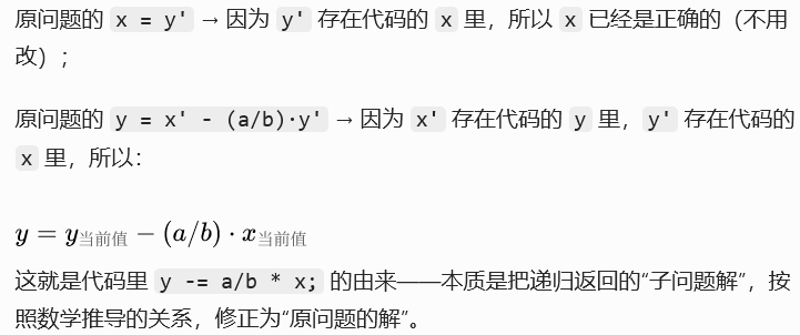 gcd(a,b,x,y);//求解a*x+b*y=g