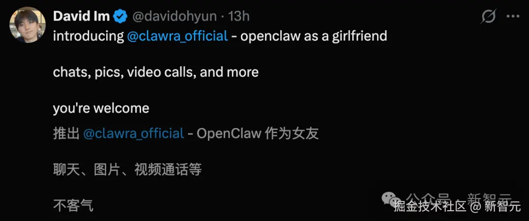 一款基于 OpenClaw 打造的韩国 AI 女友------Clawra 正式上线,瞬间引爆了全网。