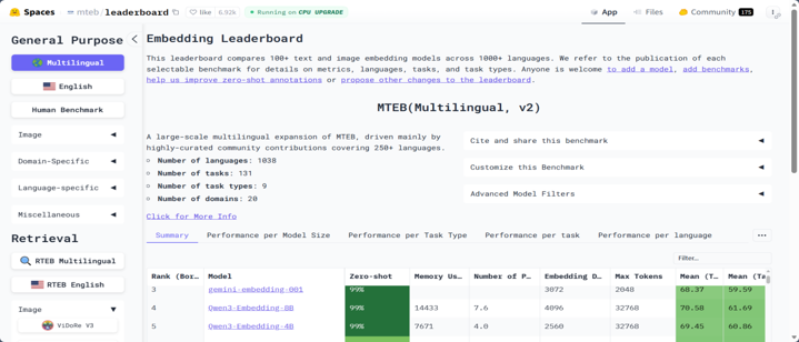 如果你觉得这个比较麻烦,也可以直接选择HuggingFace中排名靠前的嵌入模型,比如:Qwen3-Embedding-4B/8B、Bge-large embedding等