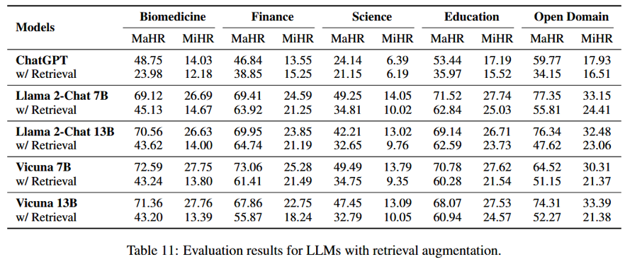 以缓解模型幻觉为例,RAG的基本思路是:根据用户查询从大规模文档库中检索一小部分支持性文档,大模型基于这些文档生成准确答案。研究表明,对几个大模型进行top-2检索,RAG能够显著缓解模型应答中的幻觉。而且,RAG的效果在较小的模型中更加明显,例如Llama 2-Chat 7B。 这意味着,通过RAG技术,我们不仅可以提升大模型的准确性,还可以使用更小的模型达到甚至超过大模型的效果,从而降低成本。