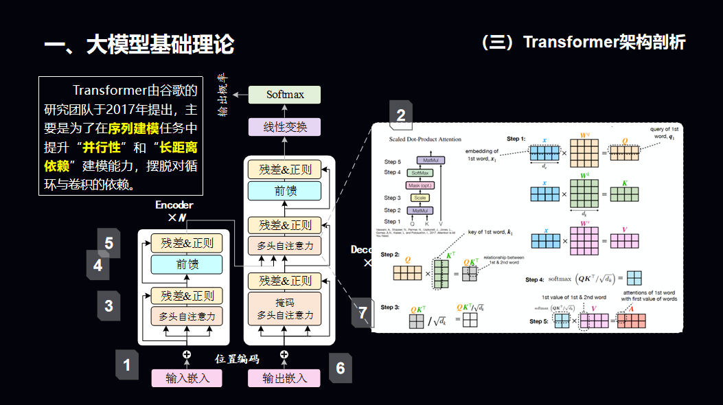 - 2、Transformer,通过注意力机制实现并行计算与长文本处理;