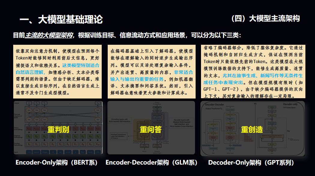 这三种架构各有优势,在实际应用场景中,只需要根据任务需求选择恰当的模型就可以了。