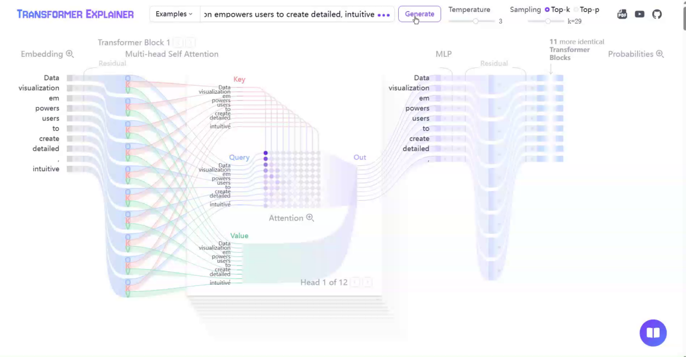 具体的技术细节我们就不逐一进行推导了,感兴趣的可以用一个叫++Transformer Explainer的网站++,结合可视化自行学习。 Transformer的这些创新设计,使其成为现代大模型的基础架构。从BERT到GPT,从T5到LLaMA,几乎所有主流的大模型都采用了Transformer架构或其变体。