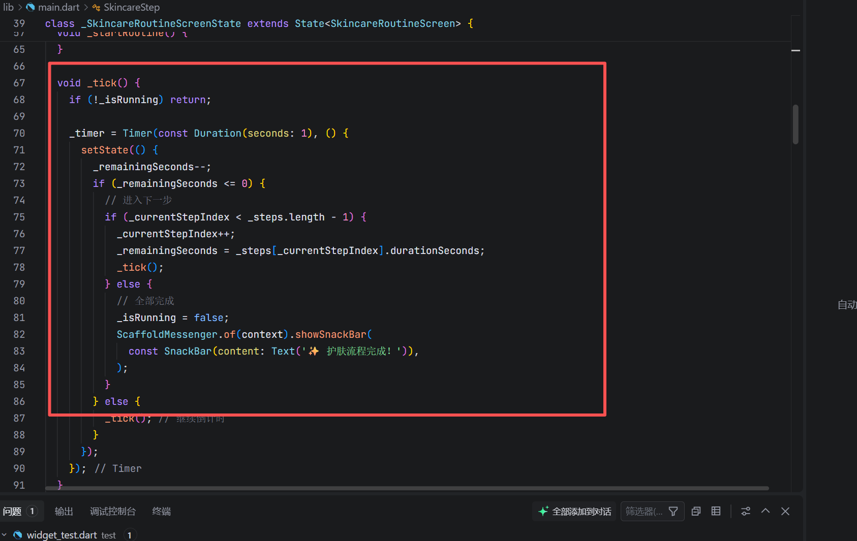 - 完成反馈:通过 SnackBar 提供正向激励(✨ 护肤流程完成!)