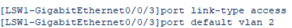 - 修改g0/0/3接口的PVID,使得g3接口划到vlan 2 的广播域,为什么不用trunk类型,trunk接口给通过的流量打上vlan标签,但是路由器的三层物理接口不识别标签,打标签的流量会被丢掉,需要把标签剥掉,使用access类型。