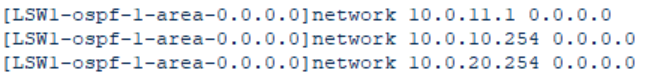 - 交换机的三个接口都加入到ospf中:(AR1和AR2同样的操作,两个接口都加入到ospf的Area 0 中)