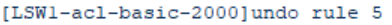 - 一条ACL中的每一条规则都有一个相应的编号;匹配顺序按照规则编号从小到大匹配,规则最小的最先被匹配。