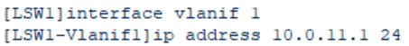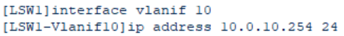 - 配置接口IP地址,交换机的接口属于二层口,不能配IP,需要创建逻辑接口(三层接口):