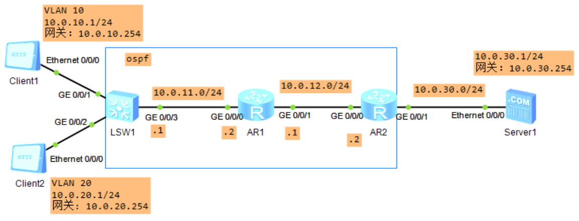 - 实现需求,在LSW1配置ACL,允许或拒绝某个流量,只需要交给LSW1处理流量,节省资源