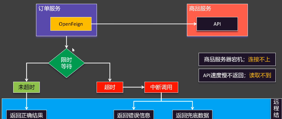 设置服务的超时,当被调⽤的服务经常失败到达某个阈值,我们可以开启断路保护机制,后来的请