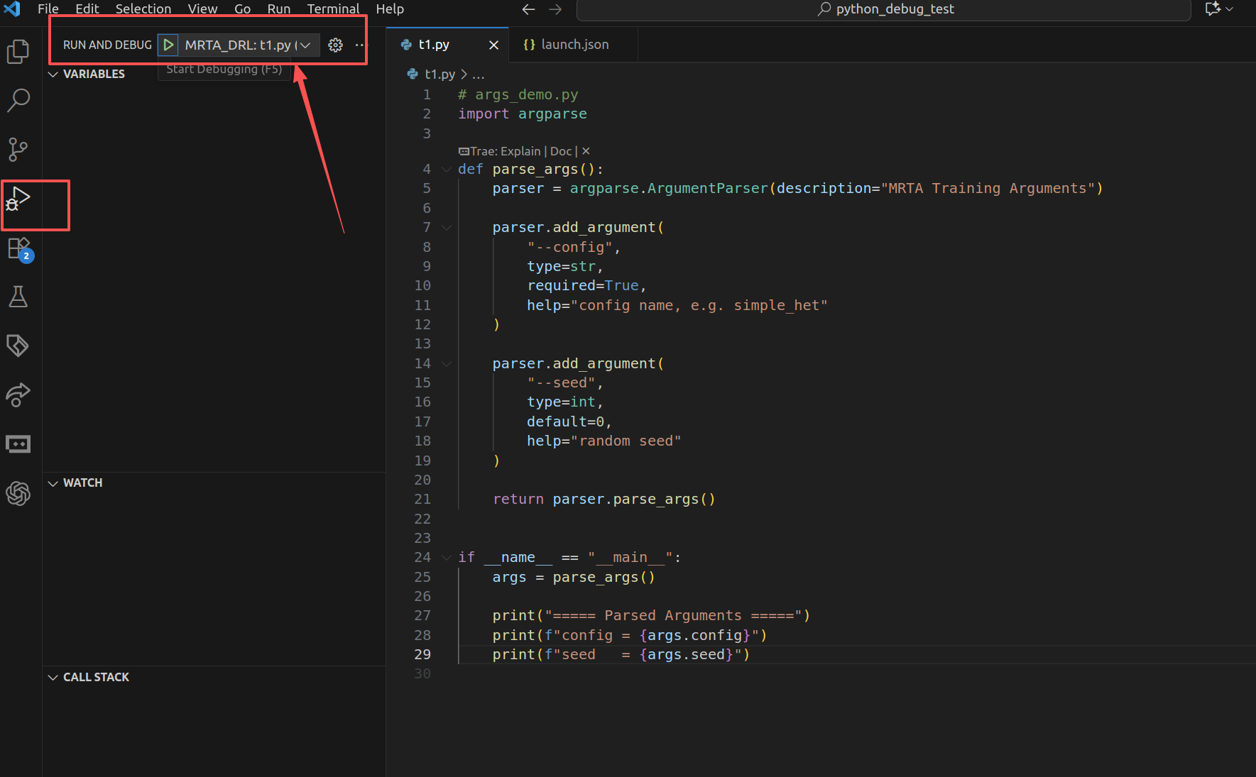 // 3) 运行参数:等价于 python train.py --config xxx ...