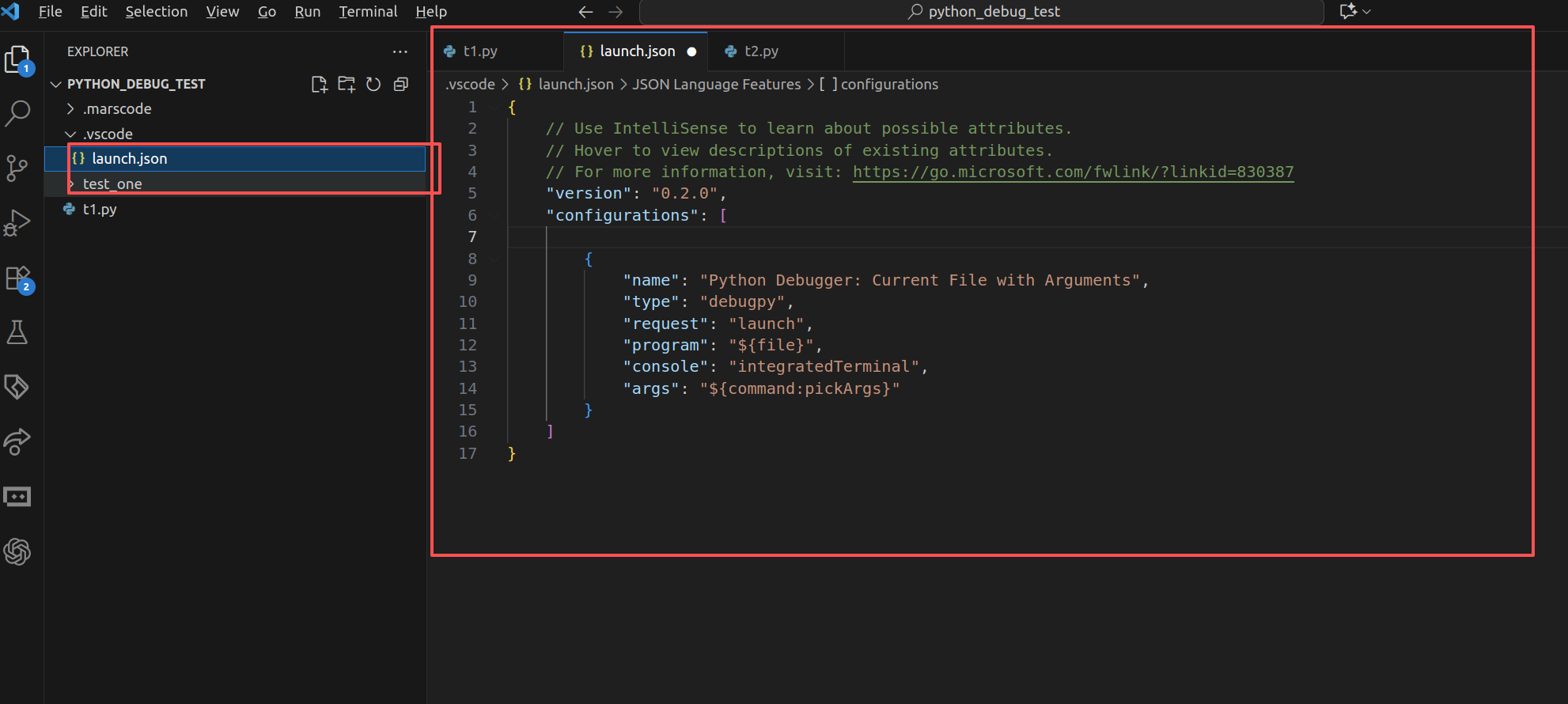 之后就会自动在当前工作空间下创建一个.vscode/launch.json的文件
