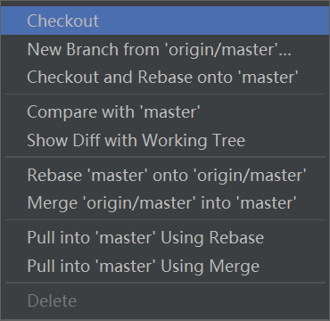 2. 右键 origin/master → Checkout and Rebase onto 'master'