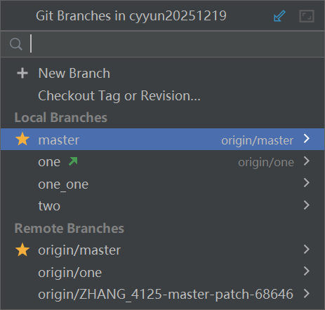 1. 右键 origin/master → New Branch from 'origin/master'...