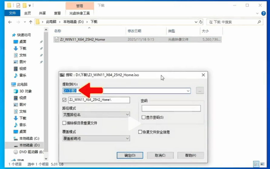 打开此电脑,在文件夹中找到下载好的镜像文件。然后选中文件,右键打开菜单,使用解决工具将文件解压出来。不要把文件解压到 C 盘和桌面。