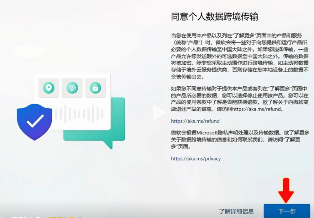 重启电脑后就会进入系统的安装步骤中,安装过程也不要强制关机。等出现这个页面,点击下一步进入桌面就可以了。