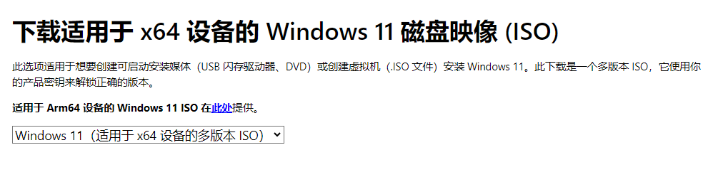 在微软官网 Win11 下载页,找到 "下载 Windows 11 磁盘映像(ISO)",选择版本后点击 "立即下载"。