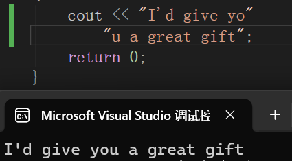 C++在使用cout进行字符串输出时允许字符串字面值地拼接。如果字符串太长,并不一定需要另起一行再用cout进行输出代码编写,而是可以灵活地用多个""将整个字符串分部断开,然后按回车将它们放到下面几行,这么做的效果和直接放在一行的没有区别,阅读起来也更加一目了然,具体可见下图代码: