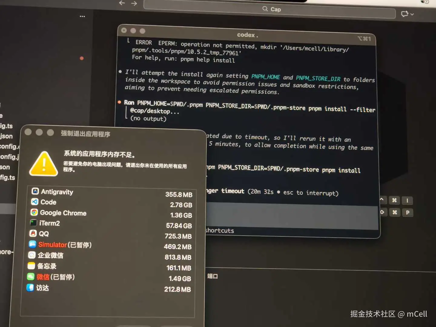 发生在 codex CLI。那次我让 codex 帮我改一个开源项目(Cap,我想去掉其中收费模块),然后------内存泄露了。