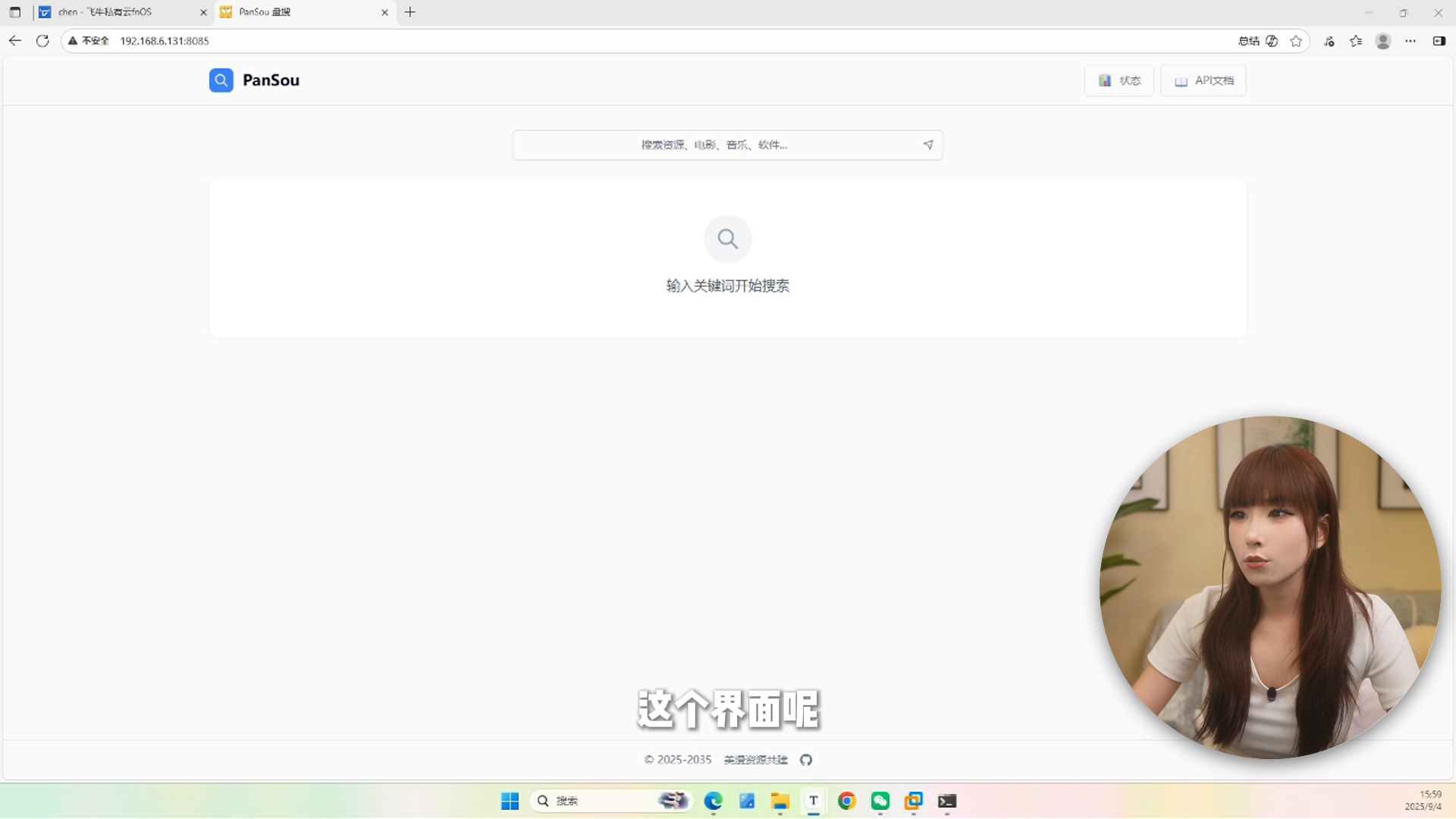 ok部署完成后,打开新的浏览器,输入你飞牛nas的ip地址加上8085端口号,就可以看到pansou简洁又高效的web界面了!