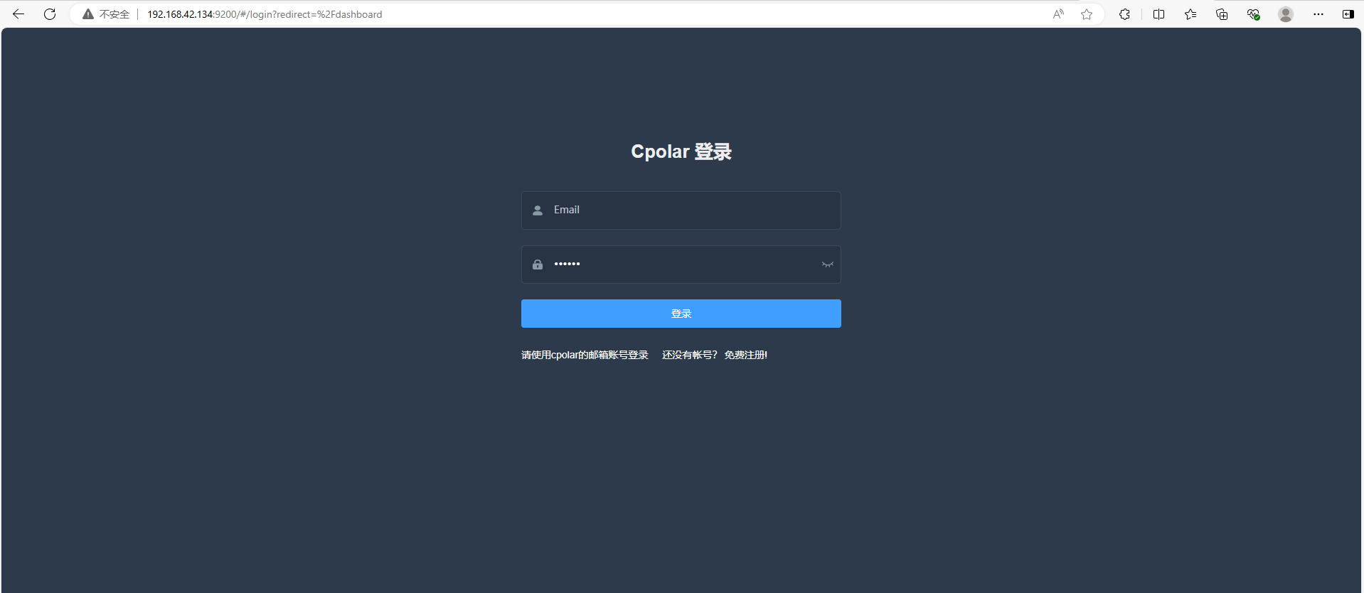 Cpolar安装和成功启动服务后,在浏览器上输入飞牛云主机IP加9200端口即:【http://localhost:9200】访问Cpolar管理界面,使用官网注册的账号登录,登录后即可看到配置界面,接下来在web界面配置即可: