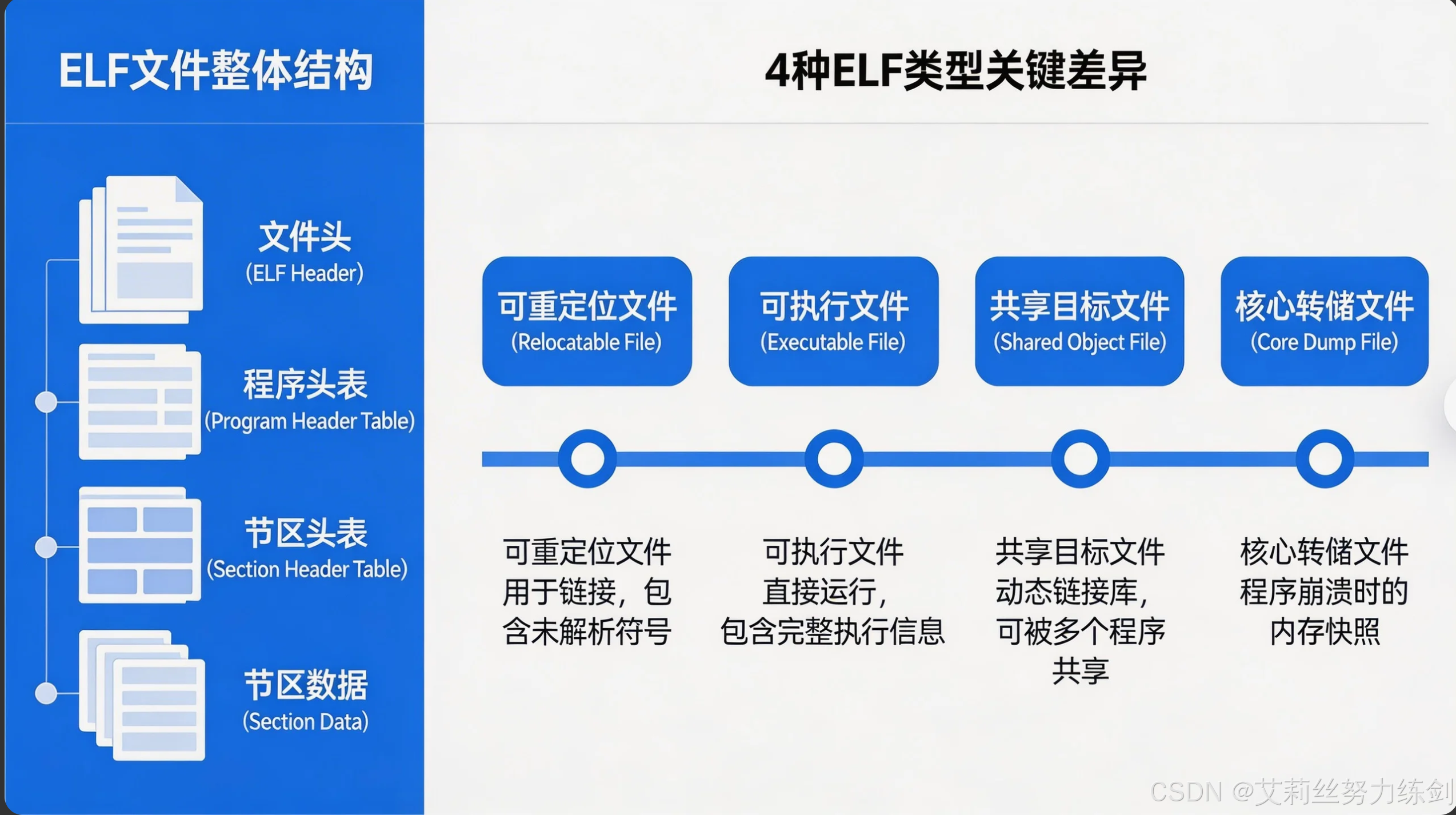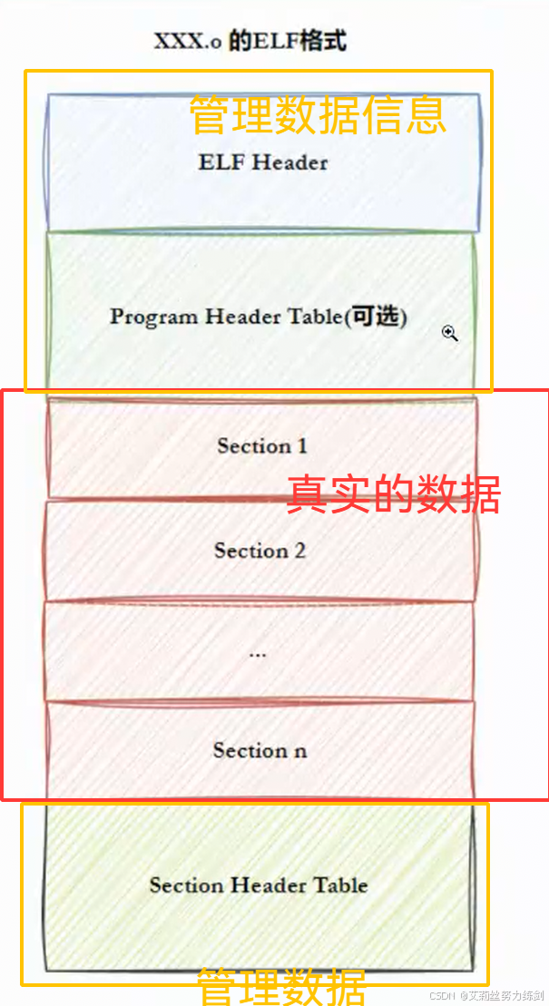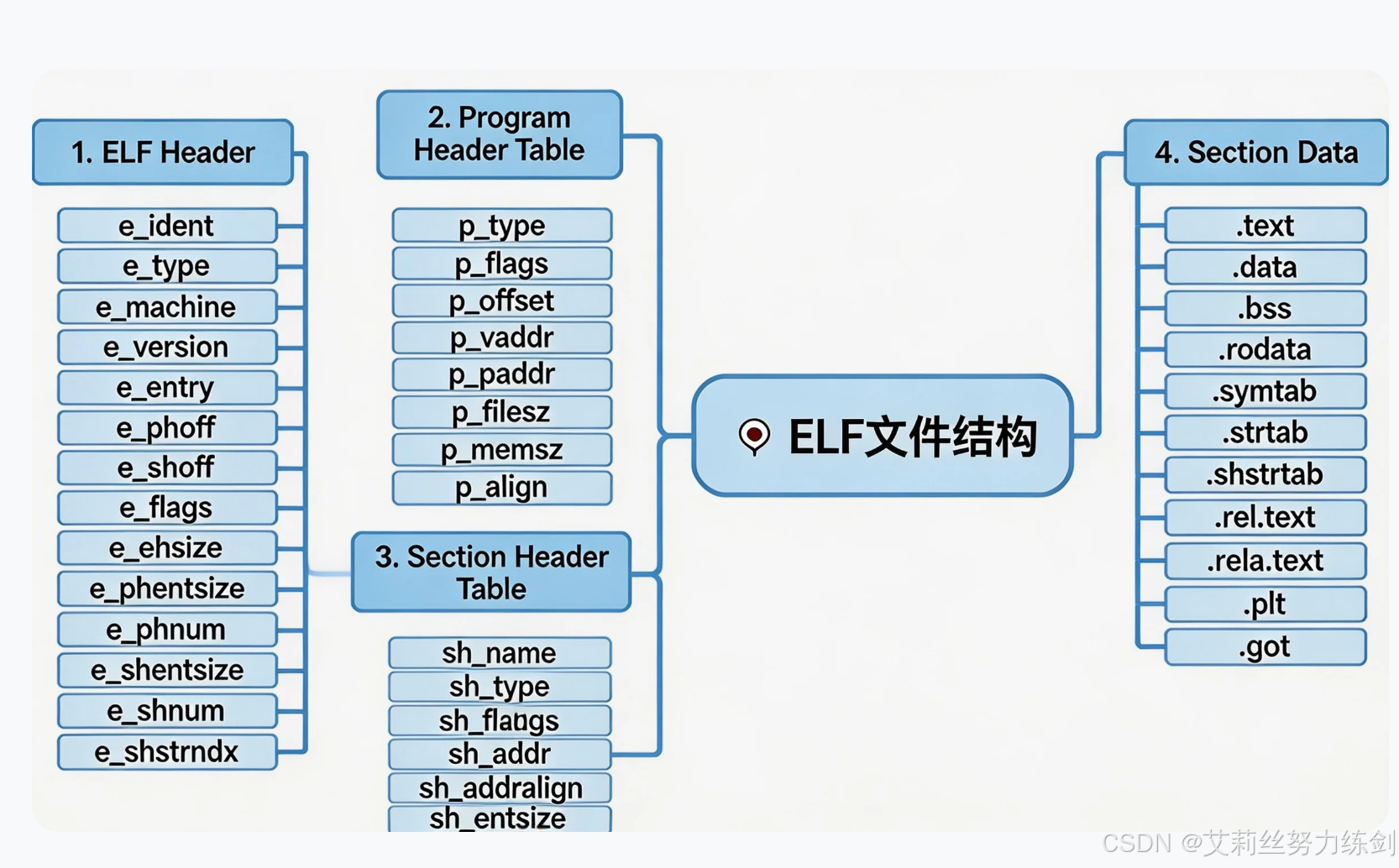 │ ├── 结构顺序:ELF头→程序头表→节→节头表