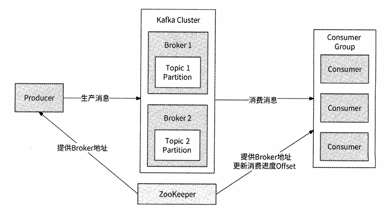 - ZooKeeper :Kafka 的"大脑",负责元数据管理、Broker 注册、Leader 选举及消费进度(Offset)的维护。