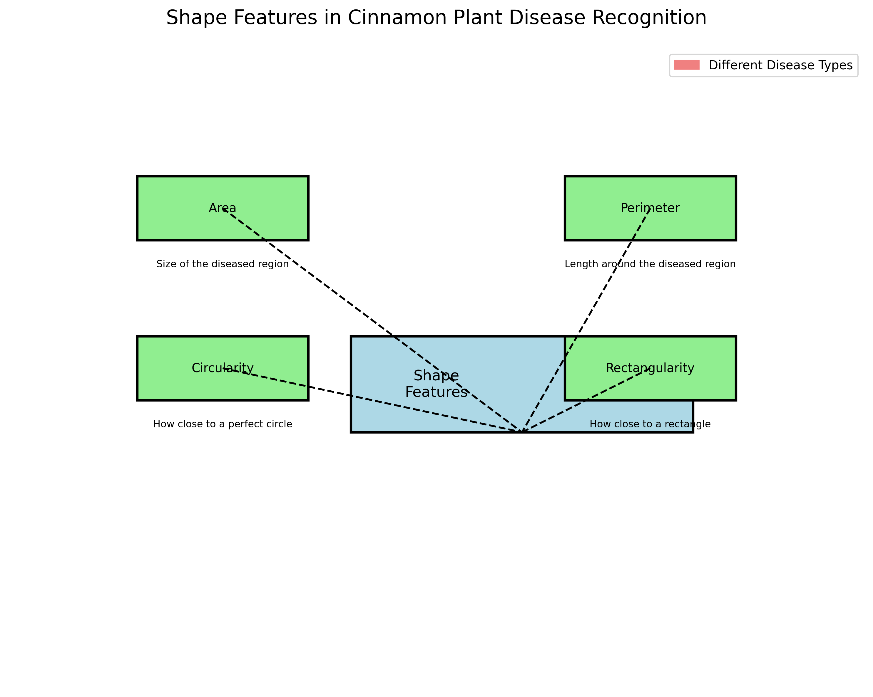 形状是描述目标区域几何特性的特征,在肉桂植物病害识别中,不同类型的病害通常具有不同的形状特征。常用的形状特征包括面积、周长、圆度、矩形度等。