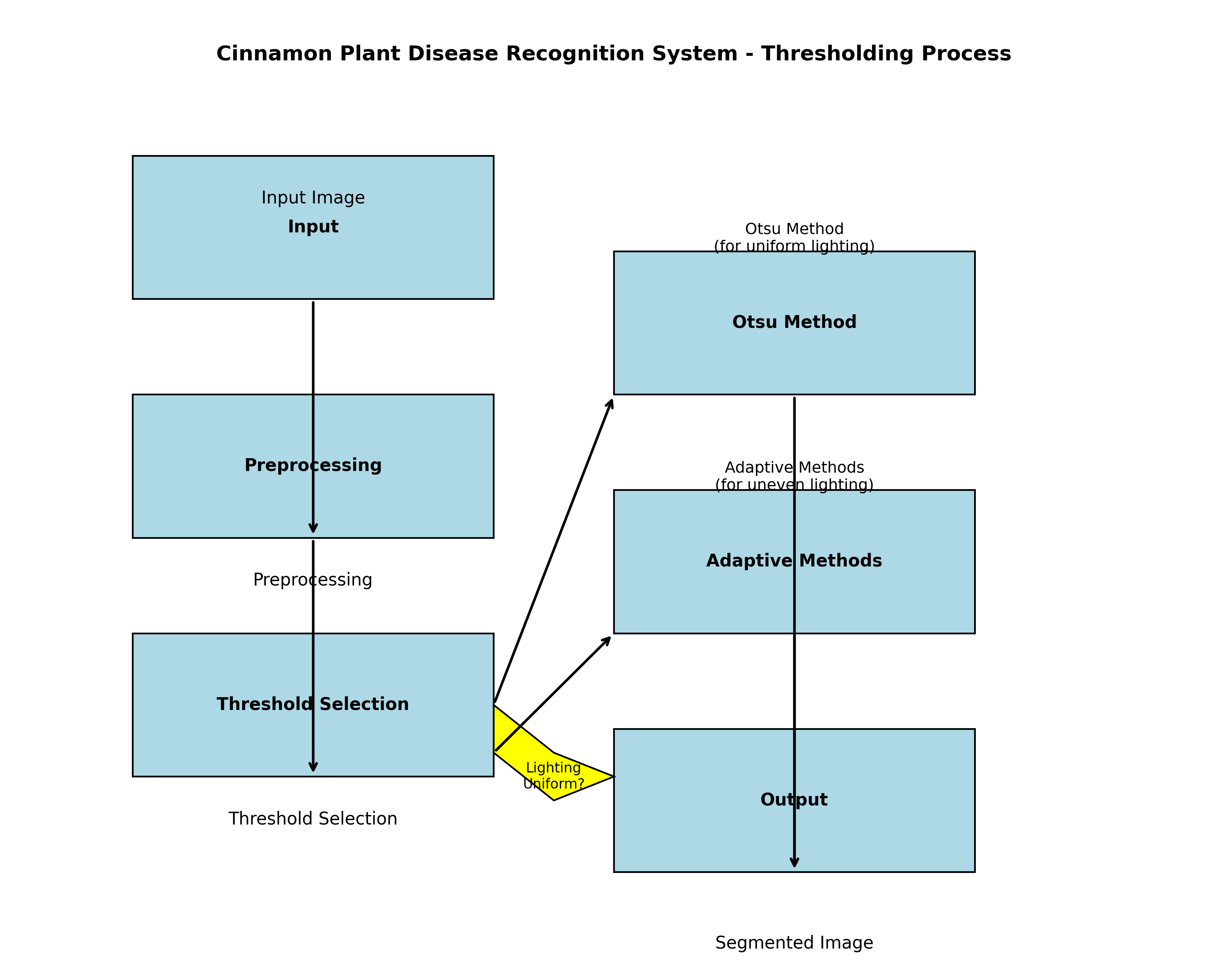 在肉桂植物病害识别系统中,Otsu方法可以自动确定最佳分割阈值,适用于光照条件相对均匀的图像。然而,对于光照不均的图像,全局阈值分割效果可能不佳,这时可以采用自适应阈值分割方法,如局部阈值或基于边缘的阈值方法。
