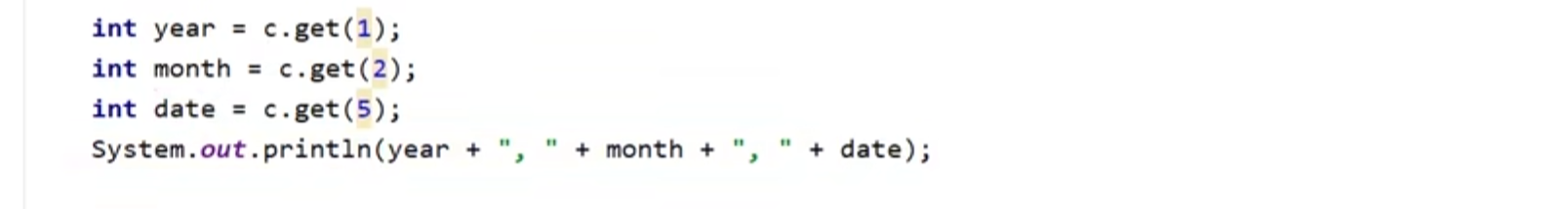 3.在调用get方法时,日历对象的信息会储存在一个数组中,