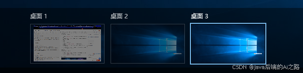 Win + Tab组合键,打开任务视图界面,点击你想要切换到的桌面缩略图,即可切换到该桌面。 - 使用鼠标:将鼠标悬停在任务栏上的"任务视图"按钮上,会弹出所有虚拟桌面的缩略图,点击你想要切换到的桌面缩略图,即可切换到该桌面。