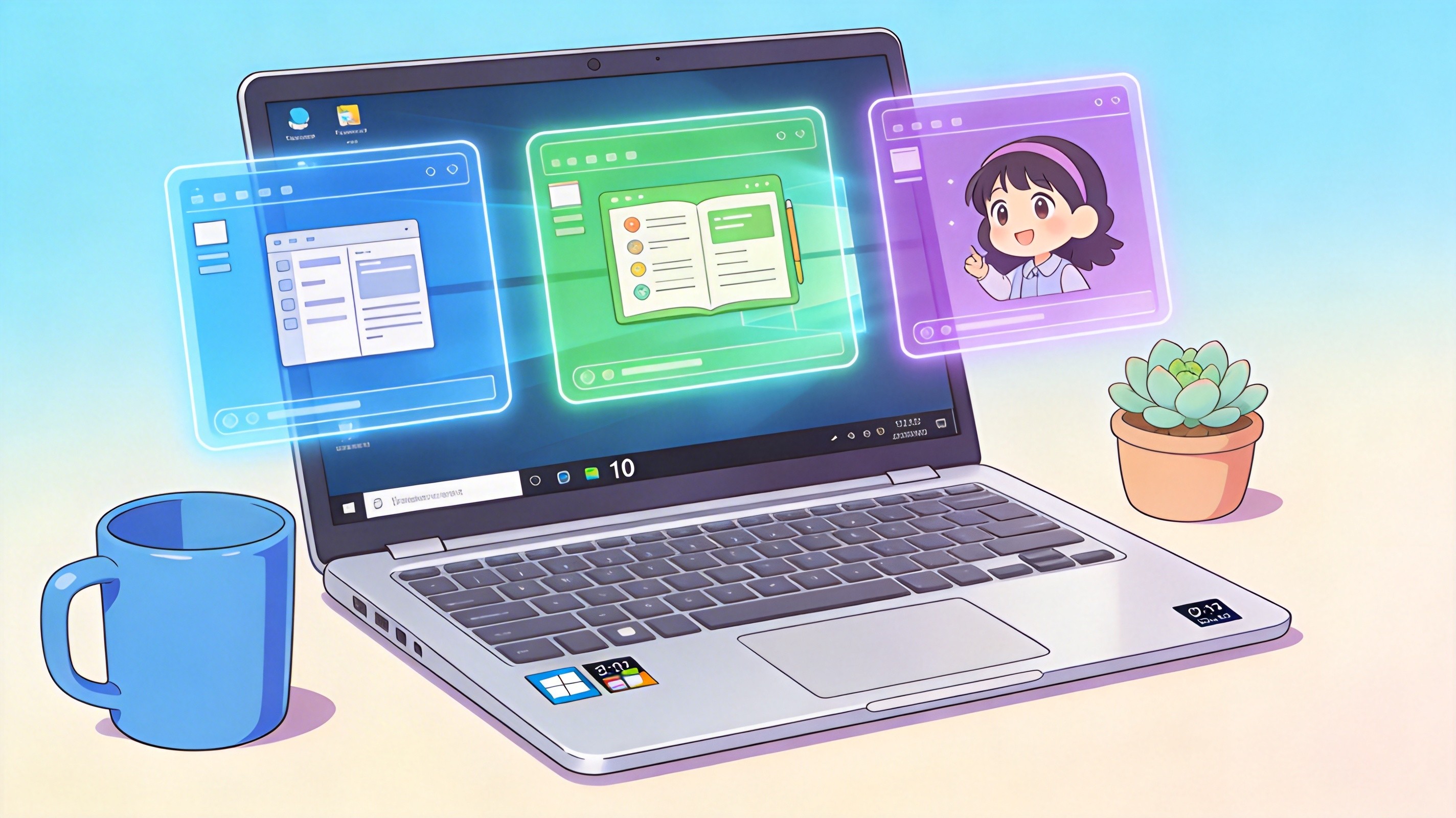 - 桌面 4:日常事务:打开日历、待办事项和浏览器,用于管理自己的日常事务。
