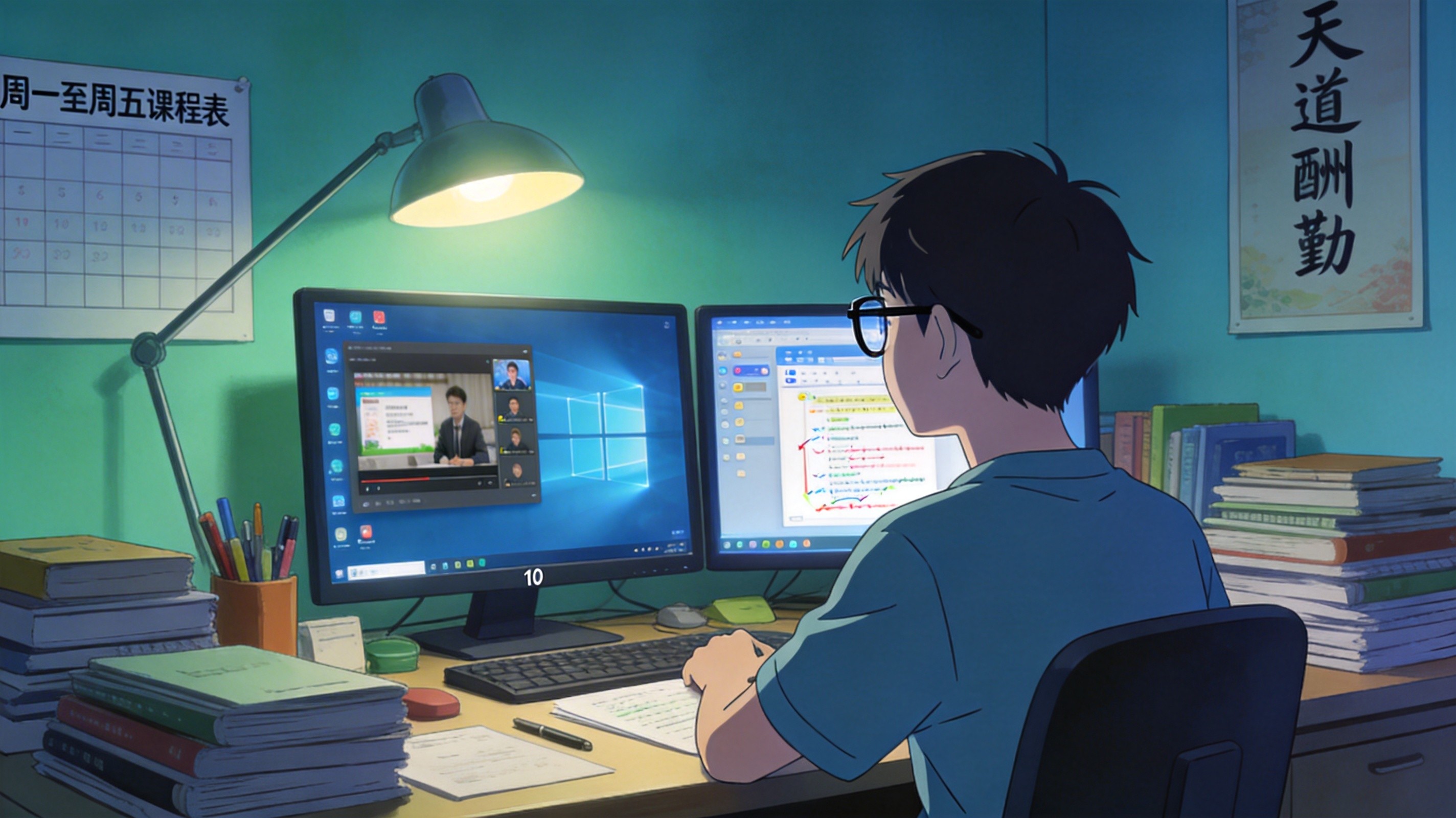 - 桌面 1:学习区:打开学习软件、文档和浏览器,用于学习和做作业。