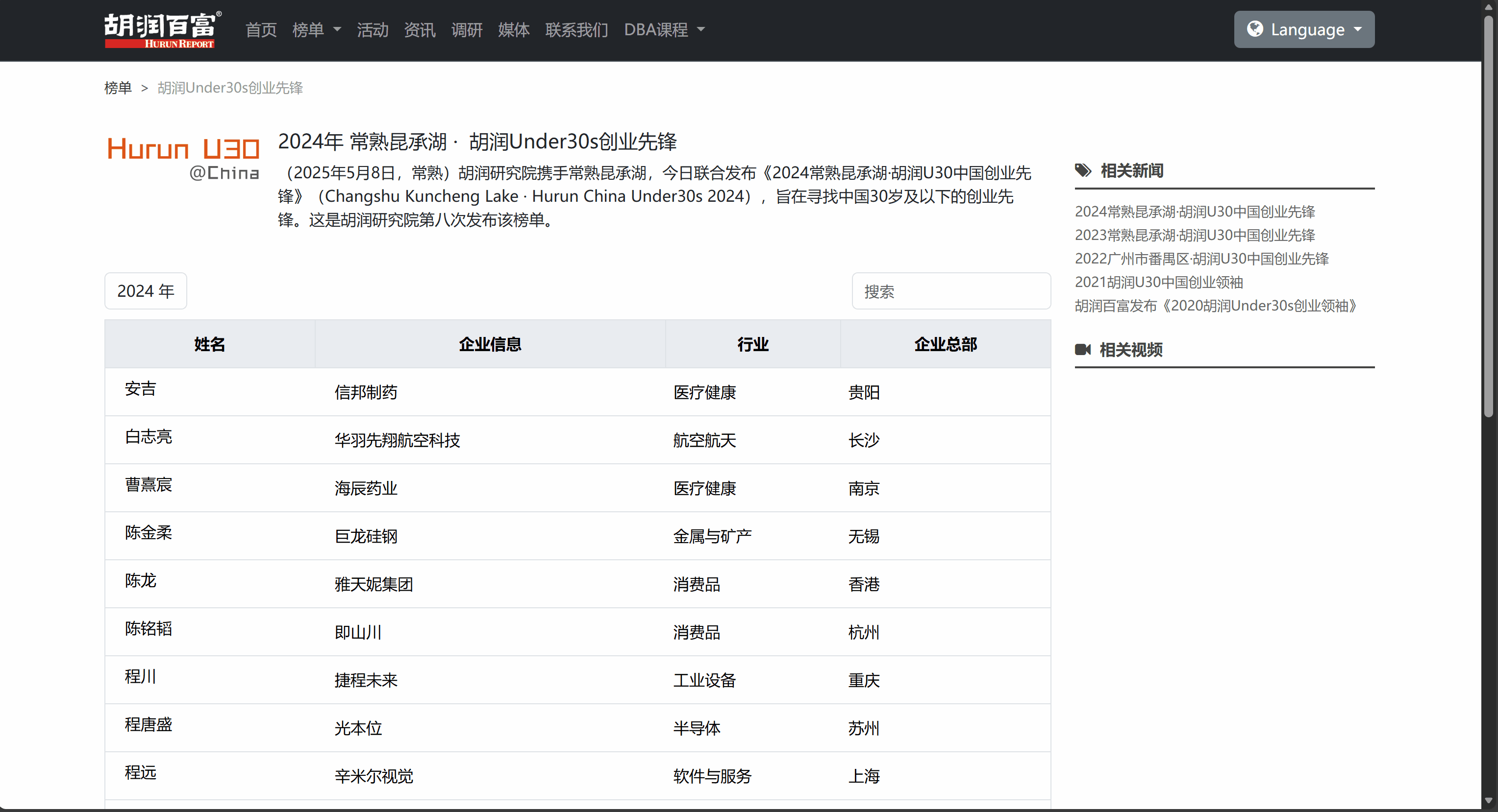 目标网站:胡润百富 - U30创业先锋榜