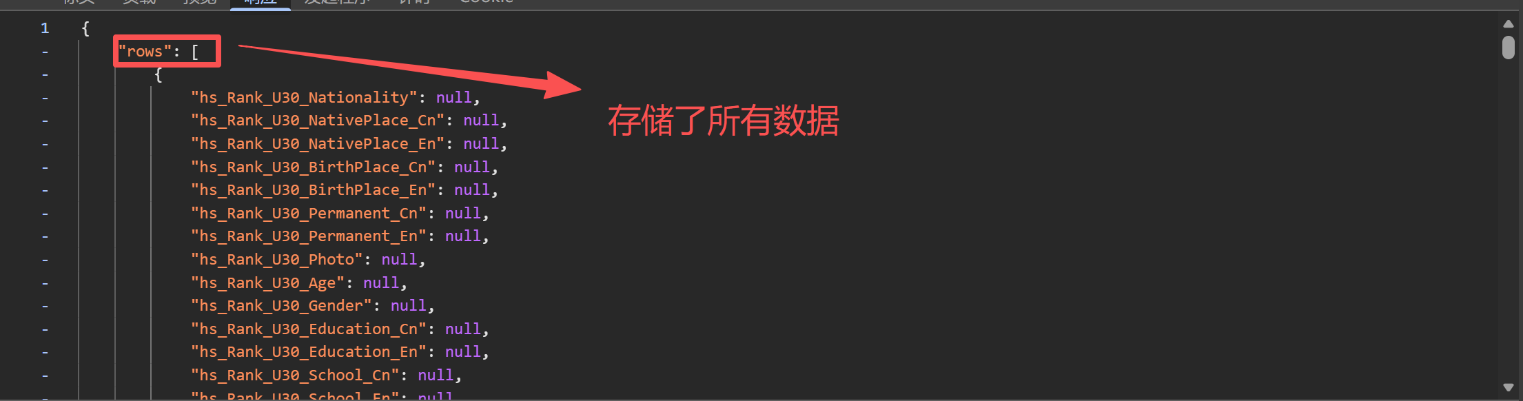 - 分析抓包记录,发现核心数据存储在