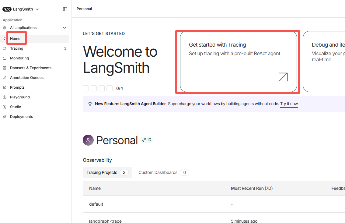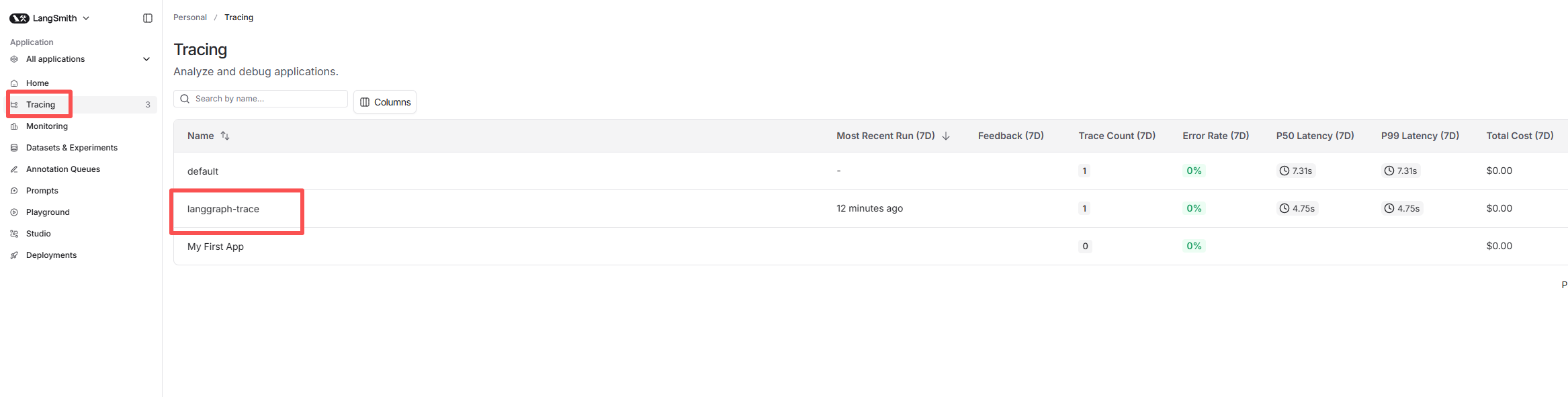 👉 LangSmith 页面左侧Tracing点开后,看到的 Projects 列表,就是这个。