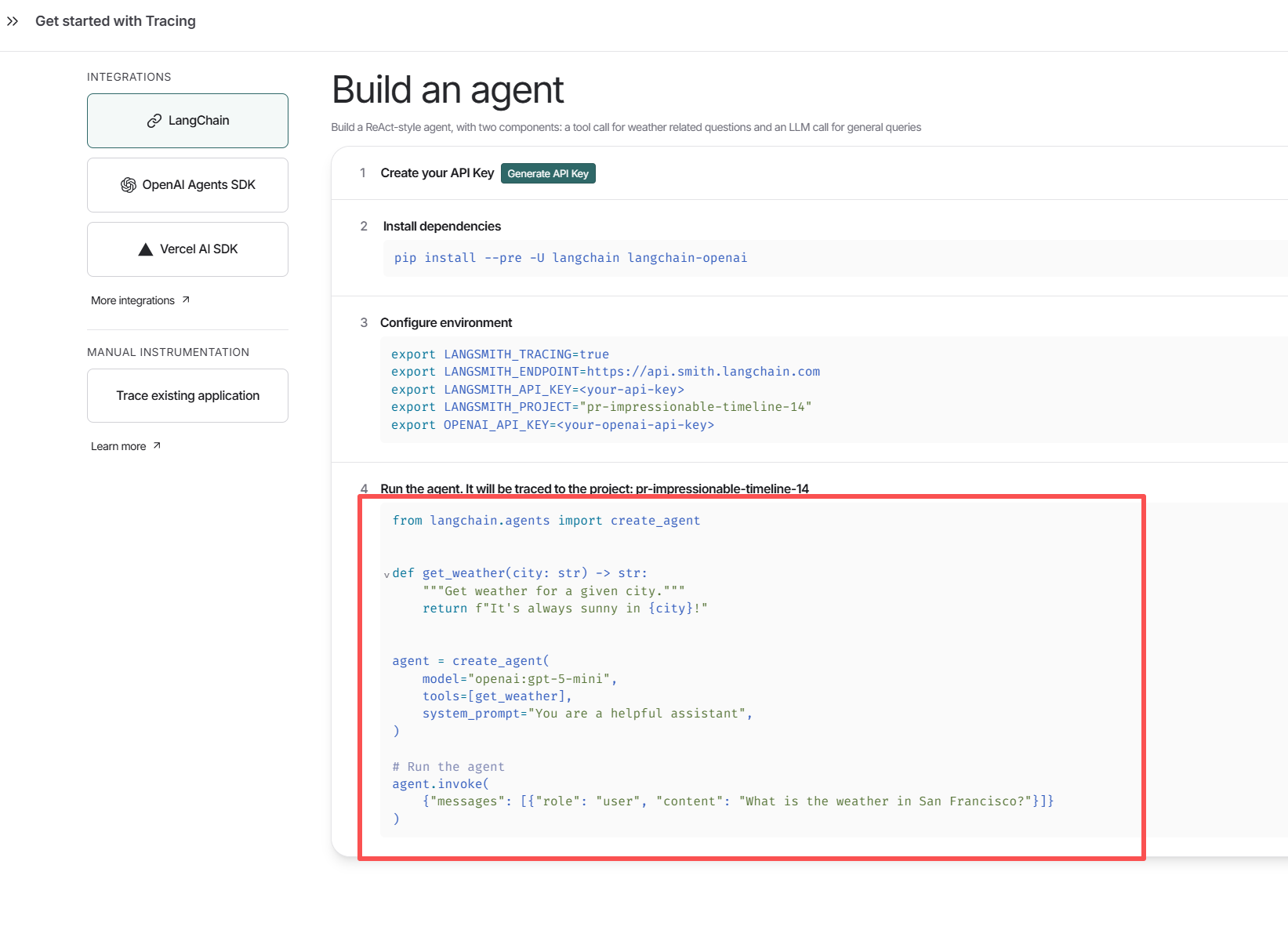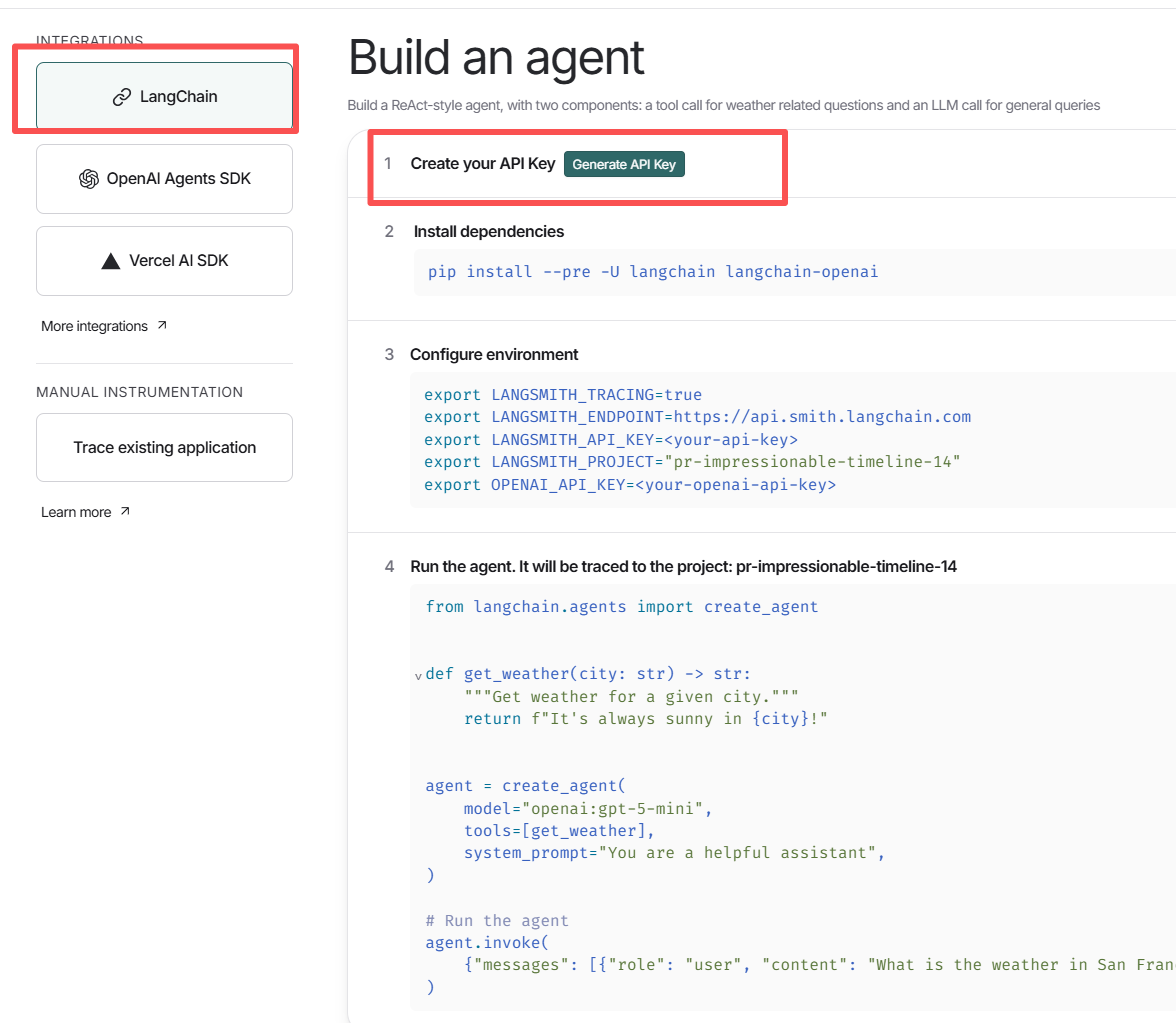 👉 LangSmith 会 自动帮你创建,不需要你提前手动建。