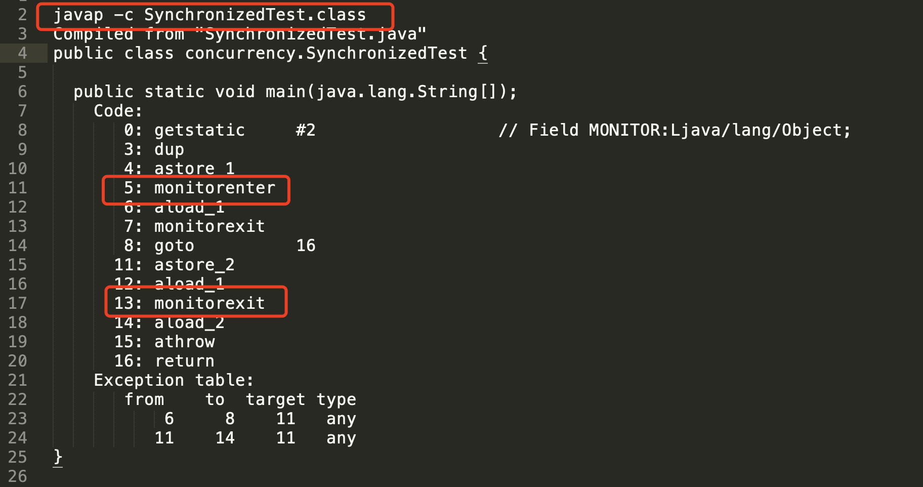 - 通过下图可以看到,synchronized同步块是monitorenter和monitorexit的过程