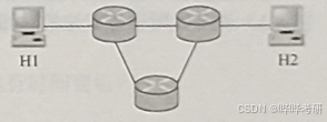 从拓扑图可知,H1 到 H2 的路径为:H1 → 路由器 1 → 路由器 2 → H2,共经过 3 段链路。