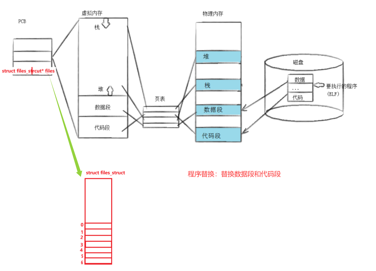 - 如果我们做了程序替换(不会创建新进程),会影响历史打开文件吗?答案是并不会影响该进程原来打开的文件,因此程序替换只是替换数据段和代码段,并不影响文件